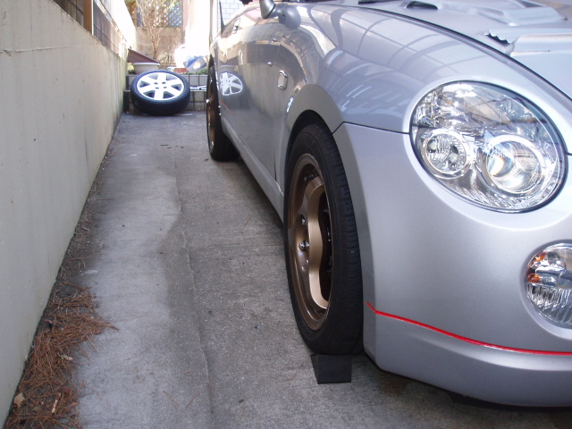 Q COPEN! > DIY足回り編 > コペンにワイドトレッドスペーサー! フロント+15mm リア+20mm その2