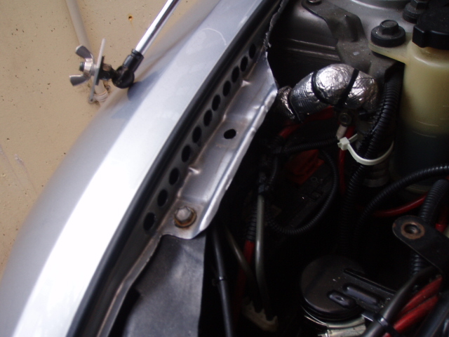 熱気がボンネットのヒンジ辺からフェンダーに流れるハズ、、、。