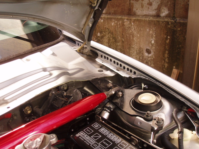 穴あけはラジエターコアサポートの辺りから始めます。