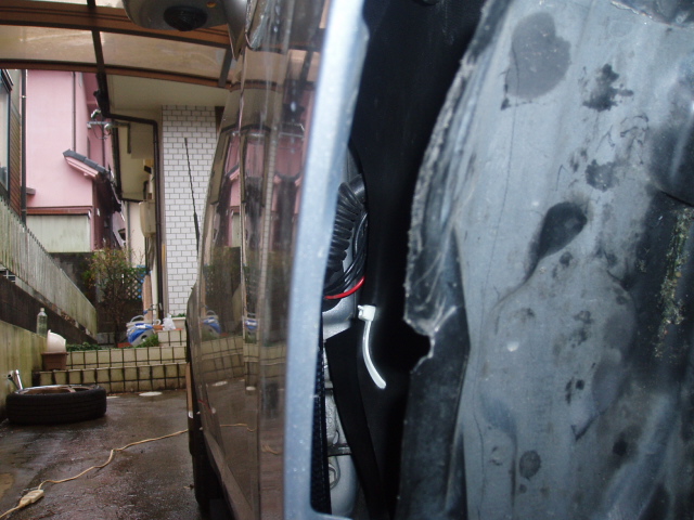 インナーフェンダーが汚いですが、どうせ穴開けるし
